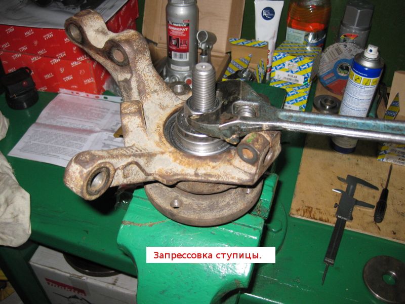 1. Снял поворотный кулак, заменил подшипник и шаровую опору самостоятельно.