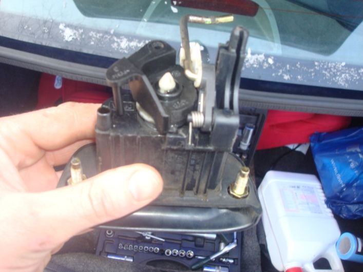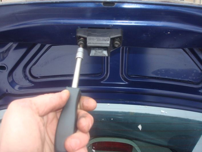 Нащупал шток идущий к защелке и опустил его вниз и вот он свет, багажник открылся